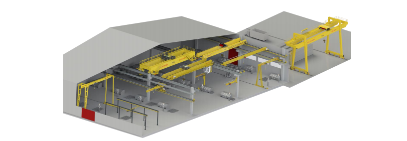 Our main product range includes European-style’s overhead cranes, gantry and semi-gantry cranes, JIB cranes, wall-travelling JIB cranes, and workstation cranes. We also provide fully automated intelligent crane systems for paper rolls, cable rolls, steel coils, bulk bags, and ladle. Additionally, we offer specialized cranes for industries such as metallurgy, foundry, forging, quenching, and nuclear power, along with electromagnetic cranes, grab cranes, explosion-proof cranes, and insulated cranes. Our product line also includes overhead transport systems for aircraft engines, multi-pivot suspension cranes in aircraft hangars, and teleplatforms.